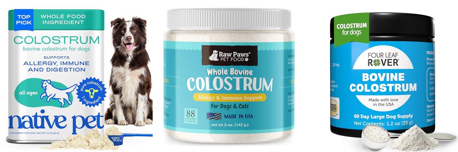 A: It’s best to stick with colostrum specifically made for dogs. While bovine colostrum is similar, dog-specific products are formulated with their needs in mind.