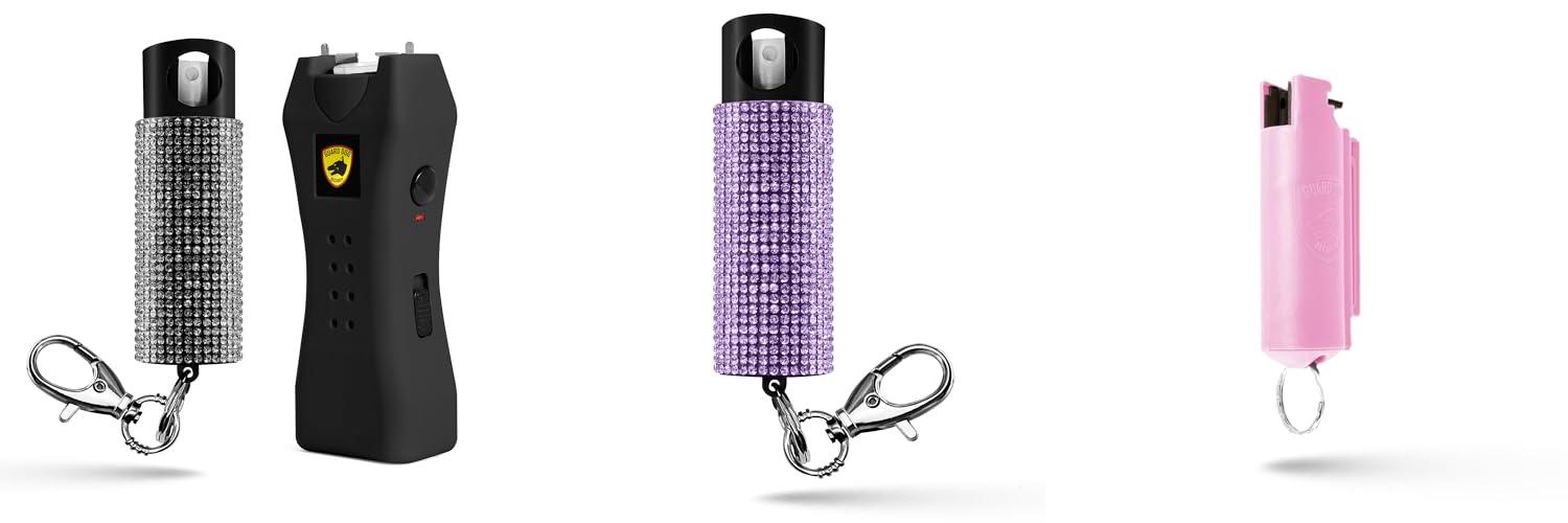 - The “Bling It On” pepper spray is stylish. It has a chic rhinestone keyring case. It’s perfect for fashion-forward self-defense.