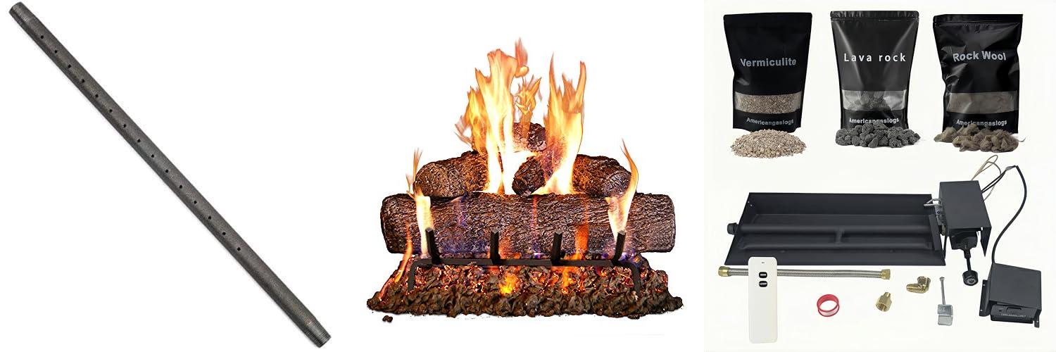 - Complete Kit: This set comes with the logs, a vented burner, a grate, silica sand, glowing embers, and a gas line connection kit. You get almost everything to get started.