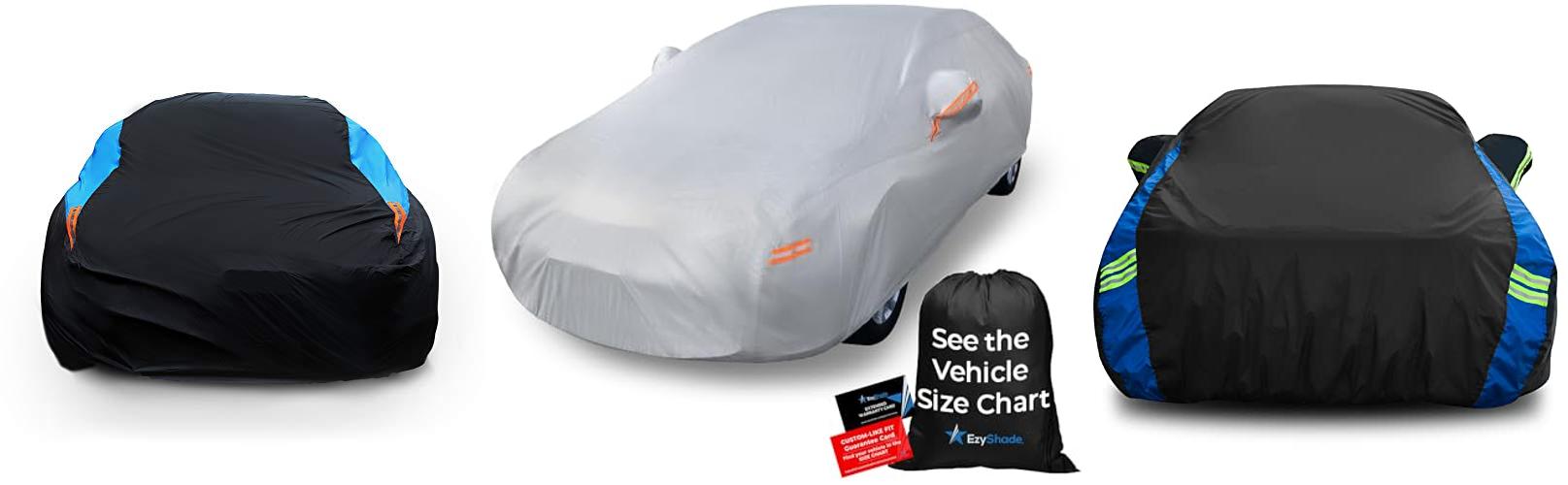 2. EzyShade 10-Layer Car Cover Waterproof All Weather – See Vehicle Size-Chart – Car Covers for Automobiles & Car Snow Cover – Full Exterior Covers – Winter Rain Sun SUV Sedan. Size A4 (See SizeChart)