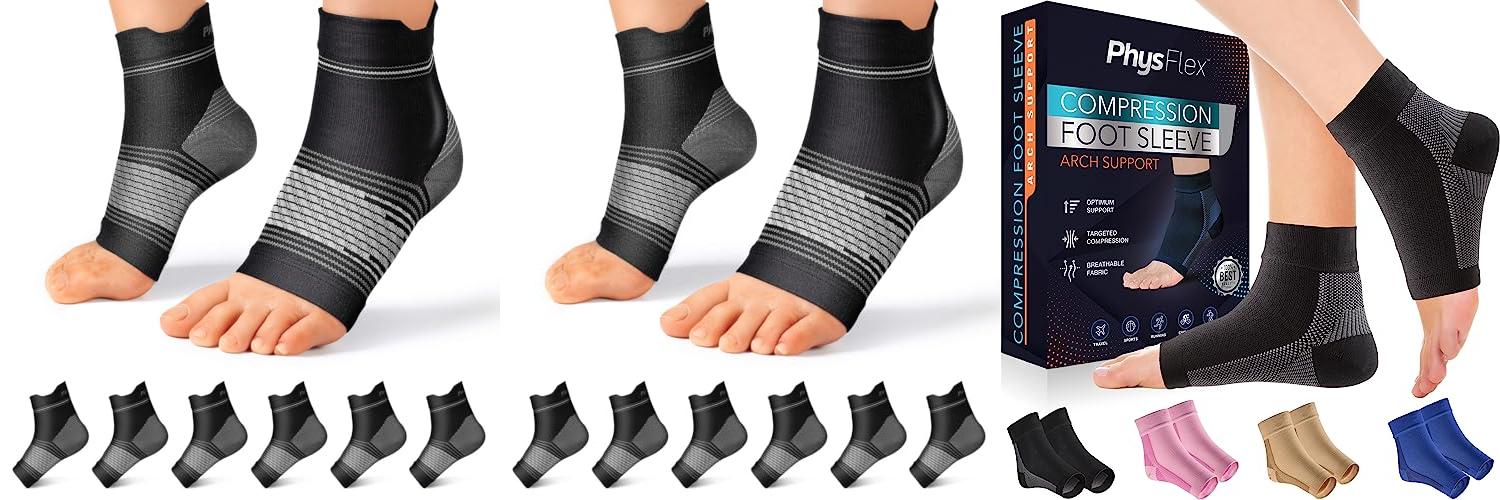 Tired of foot pain holding you back? The PhysFlex Compression Socks are designed to bring relief to your feet. These socks offer strong compression, which can help ease pain from conditions like plantar fasciitis and Achilles tendonitis. They also help with swelling and fatigue, making them great for anyone who spends a lot of time on their feet.