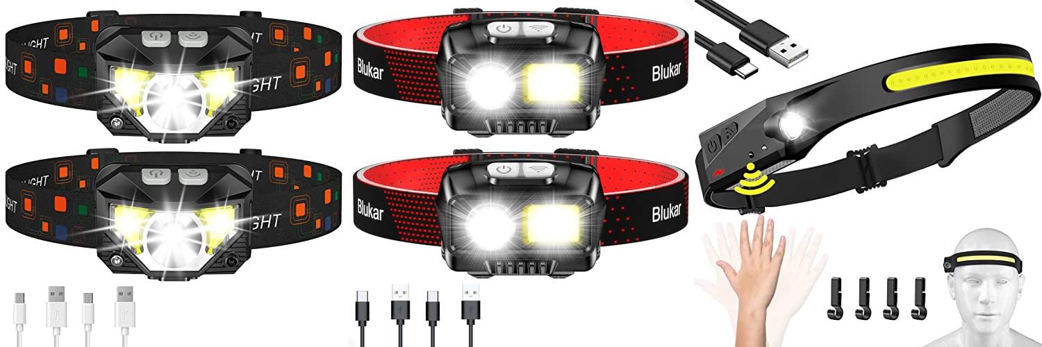 Blukar LED Headlamp Rechargeable,2000L High Lumen Super Bright Dimmable Headlight Flashlight with Motion Sensor- 8 Modes,Spotlight&Floodlight,IPX5 Waterproof for Camping,Hiking,Running,Fishing -2 Pack