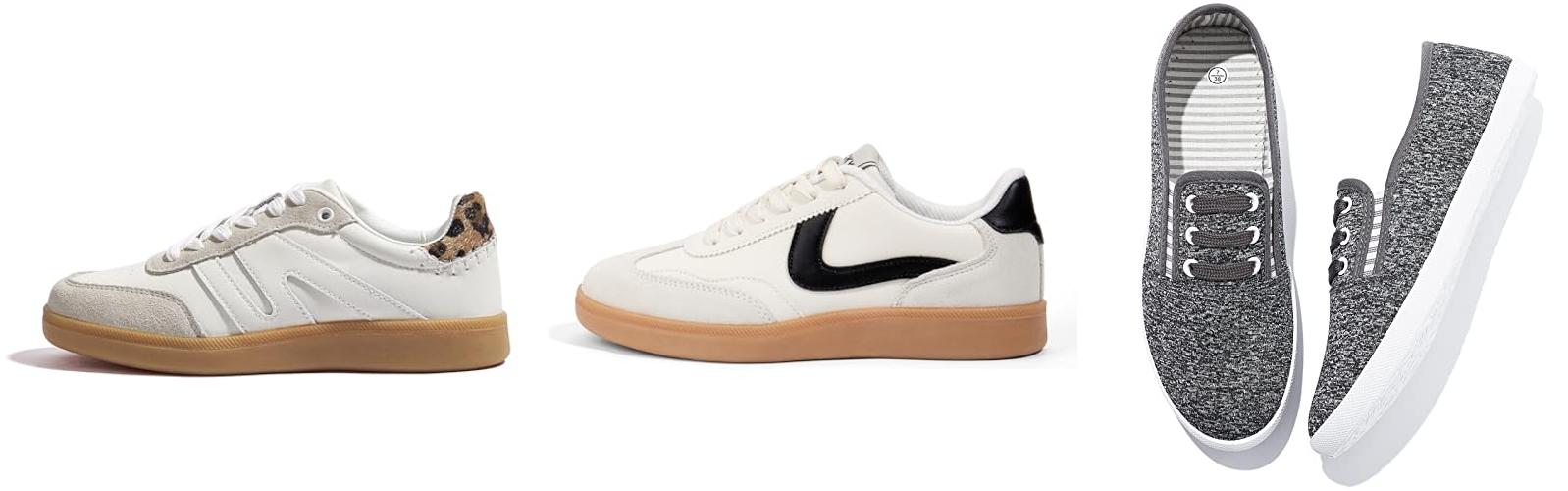 - These sneakers have a cool retro look with a modern twist. They go perfectly with jeans, shorts, or skirts for a fashionable, relaxed vibe.