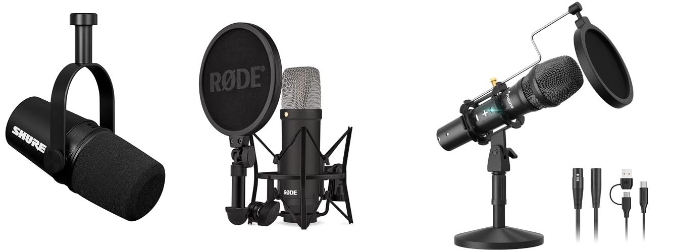 If you’re just starting, a USB condenser microphone is a great choice. It’s easy to plug in and start recording. Brands like Blue Yeti or Rode NT-USB Mini are popular for this.