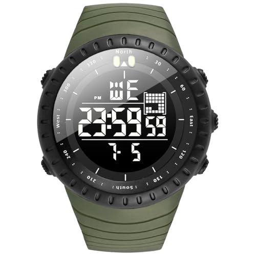 5. KXAITO Men’s Watches Sports Outdoor Waterproof Military Watch Date Multi Function Tactics LED Face Alarm Stopwatch for Men (6256 Military Green Band Black Dial)