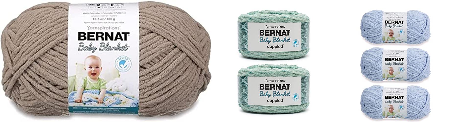 3. Bernat Baby Blanket Baby Blue Yarn – 3 Pack of 100g/3.5oz – Polyester – 6 Super Bulky – 72 Yards – Knitting/Crochet